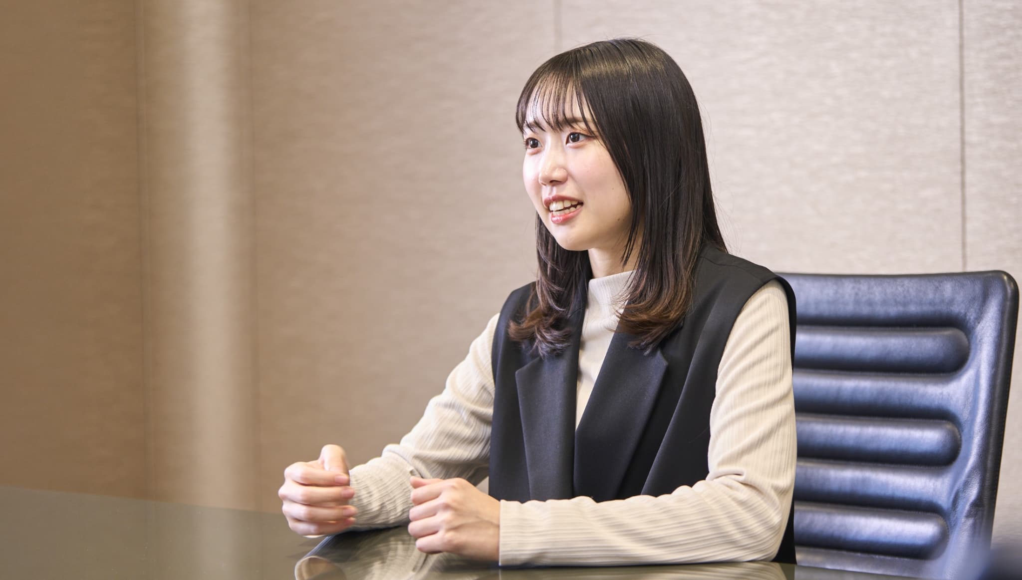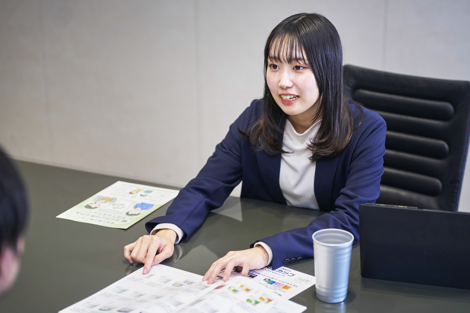 柔和な雰囲気でチームに穏やかな空気をもたらす一方、何事にも焦らず落ち着いて対処できるたくましさがあります。配属当初は控えめな印象でしたが、いまでは主要なお客さまを任せられる、なくてはならない存在です。
