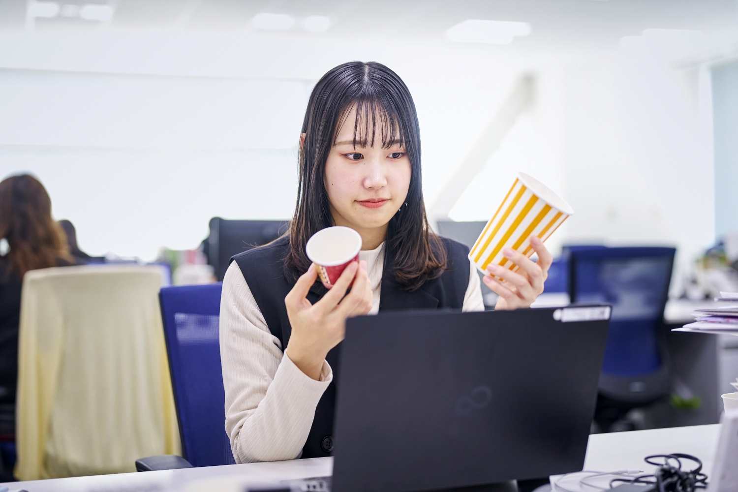 東罐興業の営業本部に所属し、ファストフードやカフェチェーンなどのお客さまを対象に、紙コップなどの生産の進行・手配、生産状況・在庫の管理、新規包材の提案などの窓口業務を担当しています。「新商品のための新しい容器が欲しい」といったご要望を受け、工場と連携しながら製品化の手配を進めることもあれば、逆に私たちが新たに開発した製品を持って、お客さまに提案しに行くことも。新たな製品のデザインから携わり、生産状況を追いかけ、苦労の末に製品がお店に並ぶ瞬間を見ると、とてもうれしい気持ちになります。