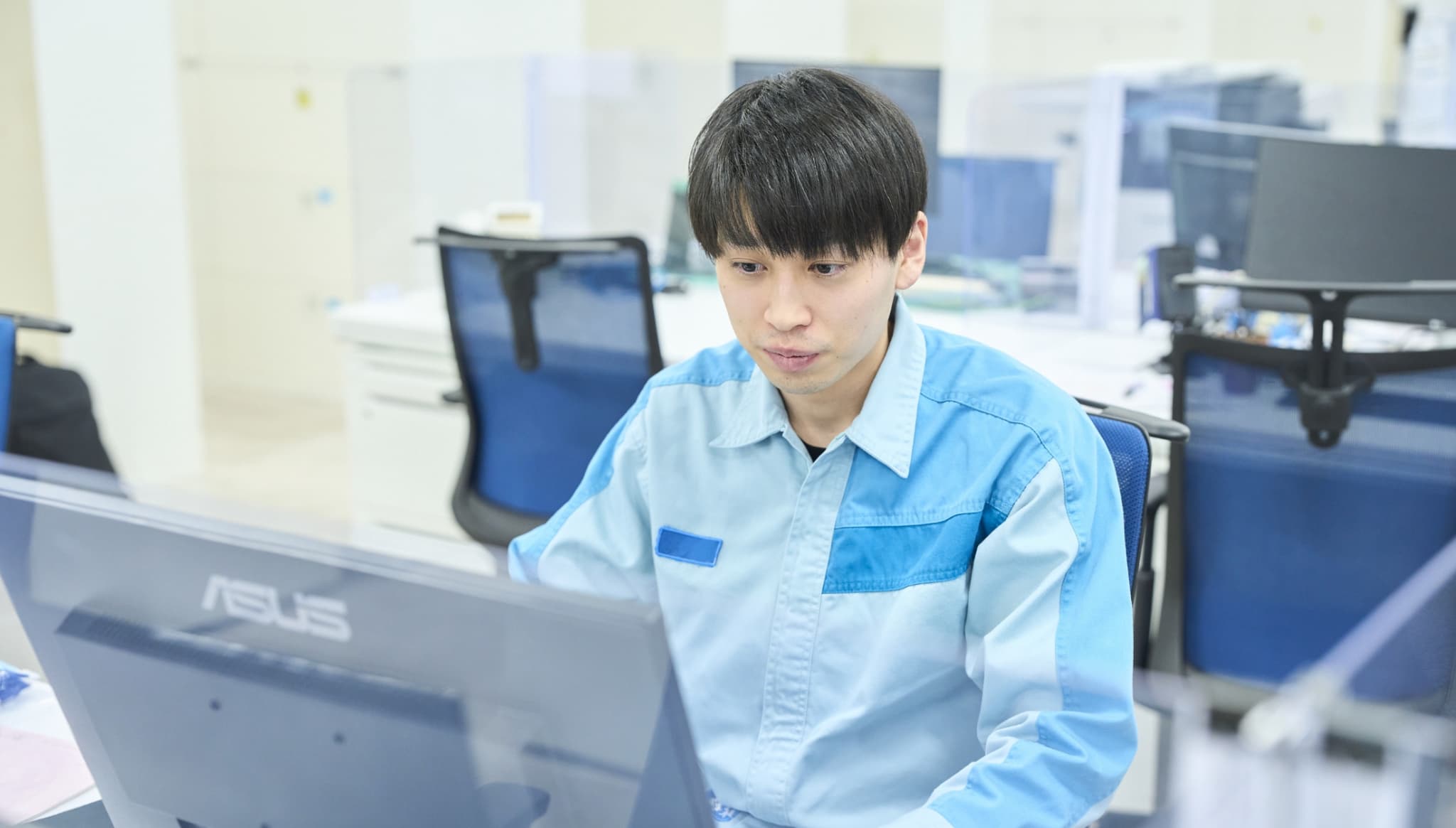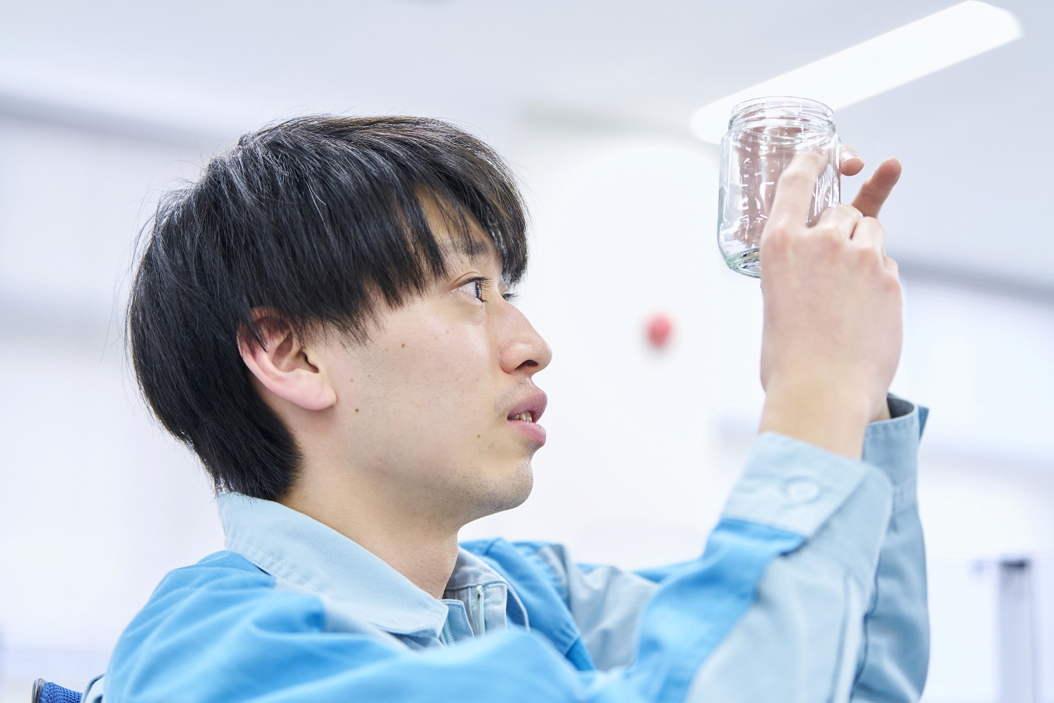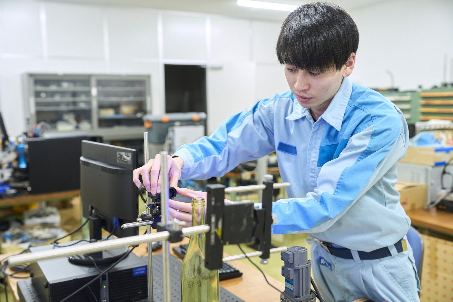 東洋ガラスの生産技術部において、ガラスびんの検査装置開発を担当しています。製造そのものが難しいガラス容器において、その欠陥を高精度で検出し、不良品流出を防いでくれる検査装置の存在は、製品の安全性と品質を確保するために欠かせません。