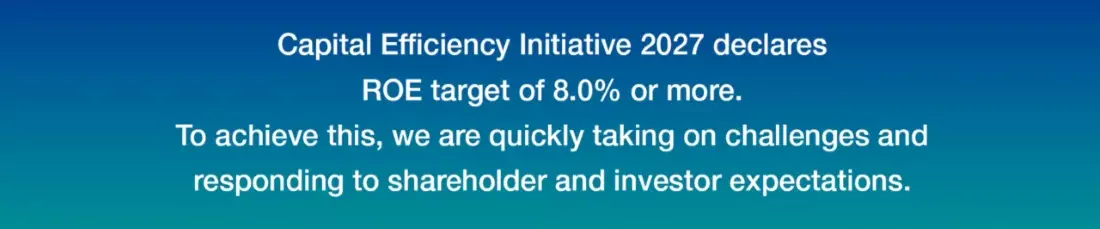 Regarding ROE, the target of 8.0% or more by fiscal 2027, set out in "Capital Efficiency Initiative 2027," is a fairly high hurdle. However, in our forecast for fiscal 2025 *, we expect ROE to improve to 6.9%, or around 5.3% even excluding extraordinary gains, and we feel that we are making steady progress in strengthening our structure in terms of both capital efficiency and profitability. We intend to achieve our target of 8.0% ROE by accelerating our growth strategy and boldly streamlining and restructuring unprofitable businesses, leaving no stone unturned.