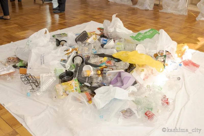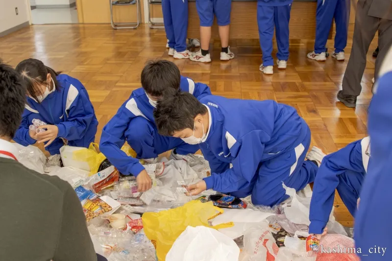 1. Conducting a waste sorting workshop at Kashima City Takamatsu Junior High School.