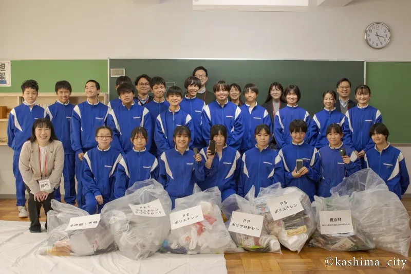 From September to November 2025, a total of 8.8 kg of plastic bottle caps were collected at elementary and junior high schools, as well as dressing caps collected at the same schools and the Kasumi Kashima Stadium store. After a chemical analysis, the materials were sent to Mitsubishi Chemical Corporation 's recycling plant.