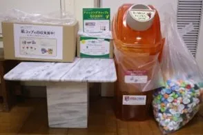 3. Collected salad dressing caps and plastic bottle caps at 14 elementary and junior high schools in Kashima City.