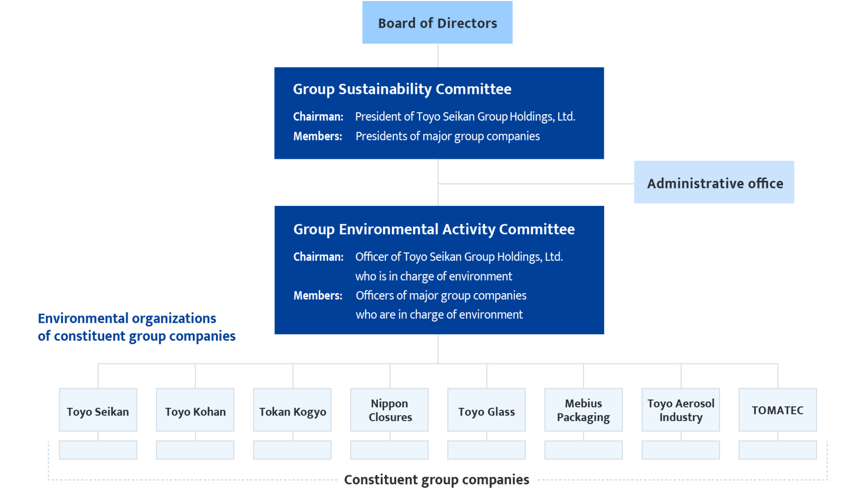 Toyo Seikan Group has organized Group Sustainability Committee, chaired by the President Toyo Seikan Group Holdings, to oversee the promotion of sustainability management.