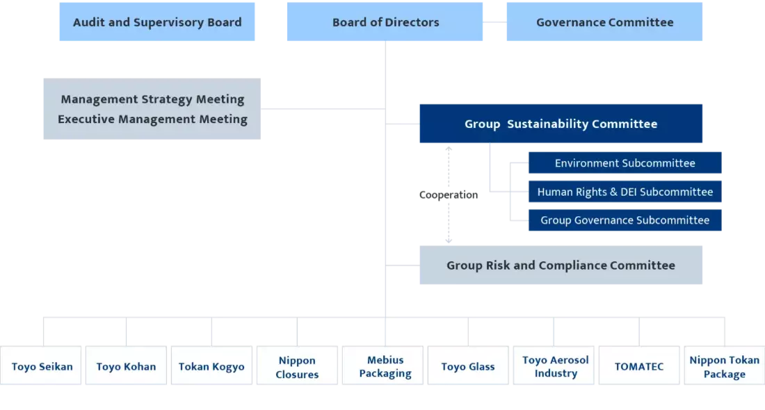 Toyo Seikan Group has established a "Group Sustainability Committee" with the aim of implementing sustainability management across the entire group.