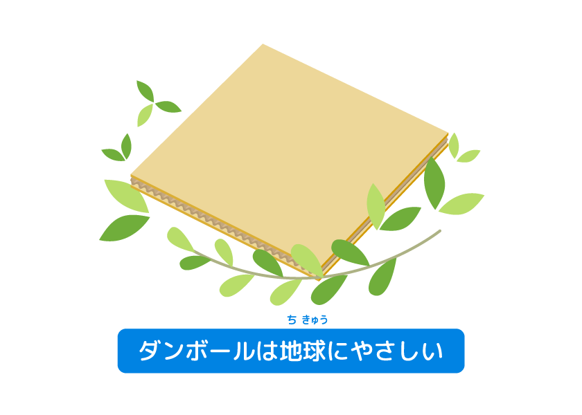 ダンボールは、軽(かる)いのにじょうぶで、いろいろな形(かたち)に変(か)えられる便利(べんり)な素材(そざい)です。たくさん回収(かいしゅう)されて、また新(あたら)しいダンボールに生(う)まれ変(か)わるので、地球(ちきゅう)にもやさしいです。