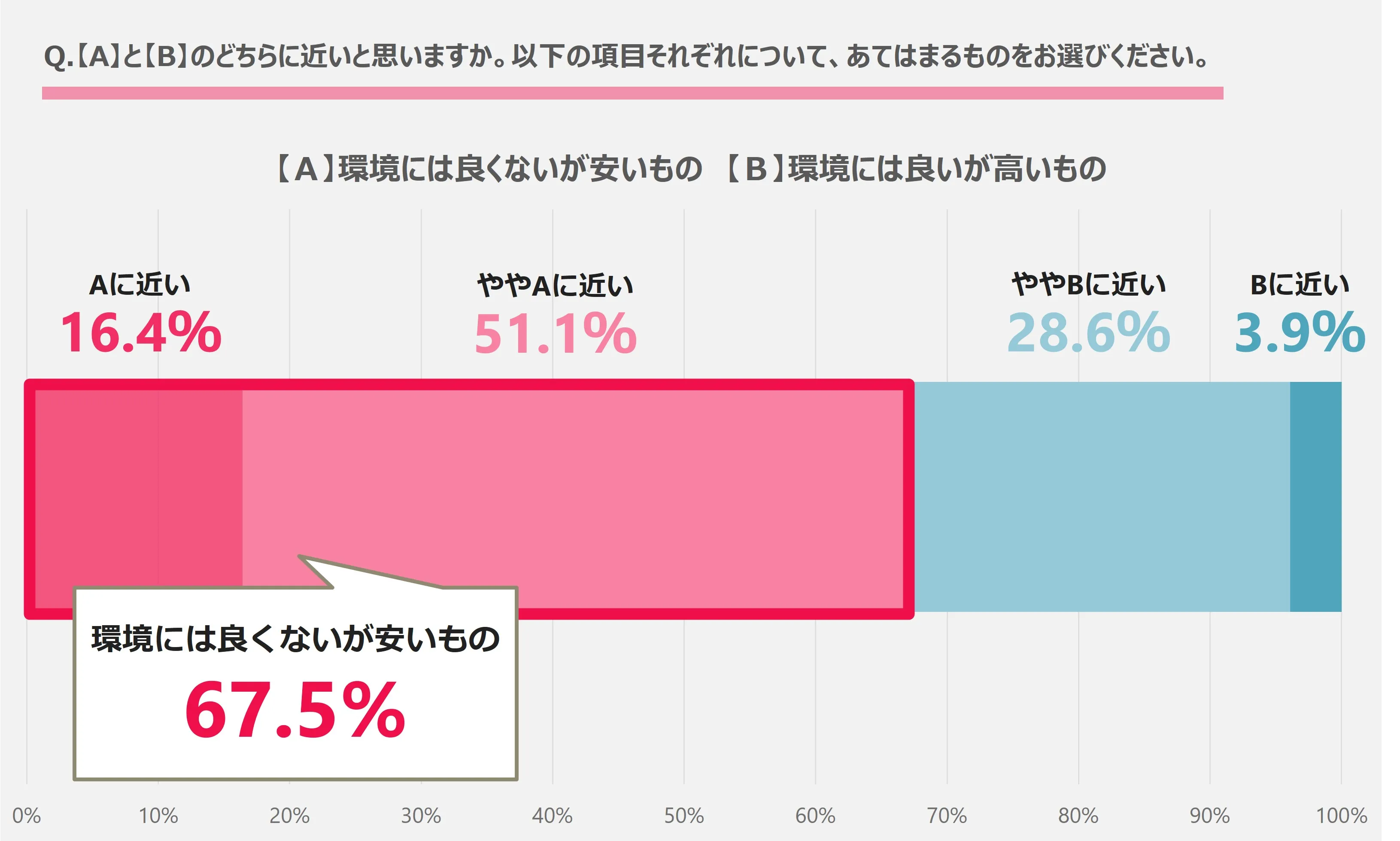 食品や日用品などの買回り品購入時、「環境には良くないが安いもの」と「環境には良いが高いもの」、どちらを選ぶか調査したところ、前者に近い人が6割強を占める結果となりました。
