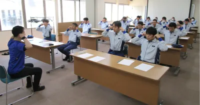 東罐興業静岡工場では、毎年、工場で働く従業員全員を対象とした安全衛生の研修会を行っており、2023年度は9月16日にメンタルヘルスケア研修と安全研修を実施しました。